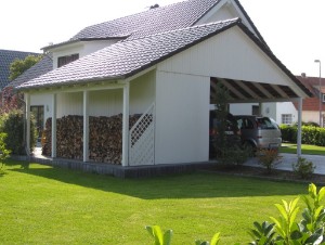 Doppelcarport mit Geräteraum | | . . . . mir Brennholzlager |